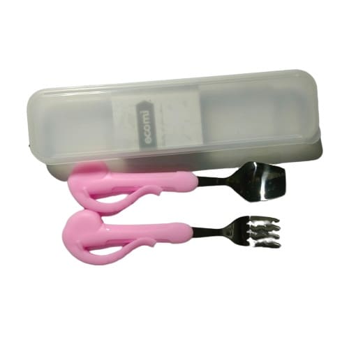 Cutlery Set With Case For Kids - Spoon & Fork - Pink