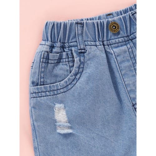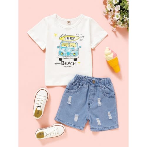 Buy 2-piece Kid Boy Letter Car Print Set T-shirt Matching Ripped Denim Shorts in Nigeria