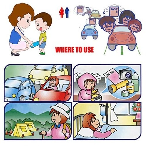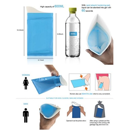 USING OCCASIONS – Disposable Urinal Usually used as traffic jams, motion sickness of seasick, airsick and carsick, impaired mobility, kid’s pee in public, potty training, camping, hiking,can be use as any emergency toilet bags etc.