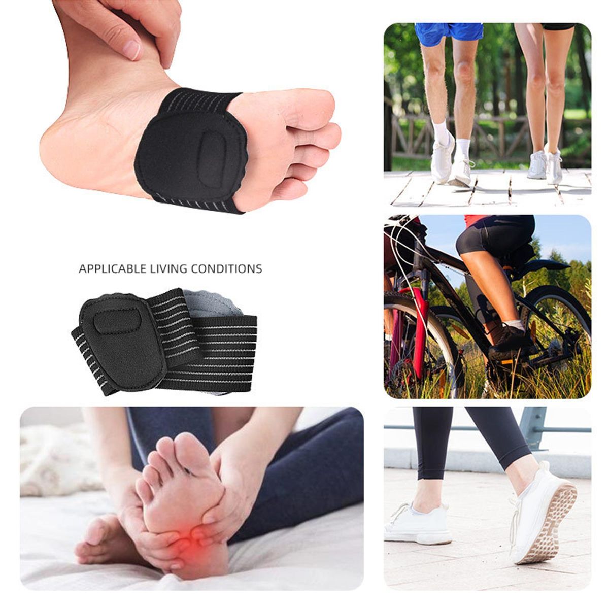 Arch Support Sleeves: The compression cushioned brace is an arch support designed for standing or walking for a long time, perfect for plantar fasciitis, flat feet, high arch, etc. relieving sore and fatigue.Quality Material: Built in magnet, the Orthotics Strap is made of premium and durable elastic fabrics, skin-friendly, comfortable, breathable and easy to wash. Universal: One size fits most people, both men and women, keeping you comfortable throughout the day.Easy to Wear: Without the need of a bulky brace, it fits well even with your shoe on, like insert insoles. Great to wear during running, exercising, playing sports, working or at home.Fit for Most Shoes: Compatible with most shoes types, sneakers, office shoes, heels, slippers, sandals and more.