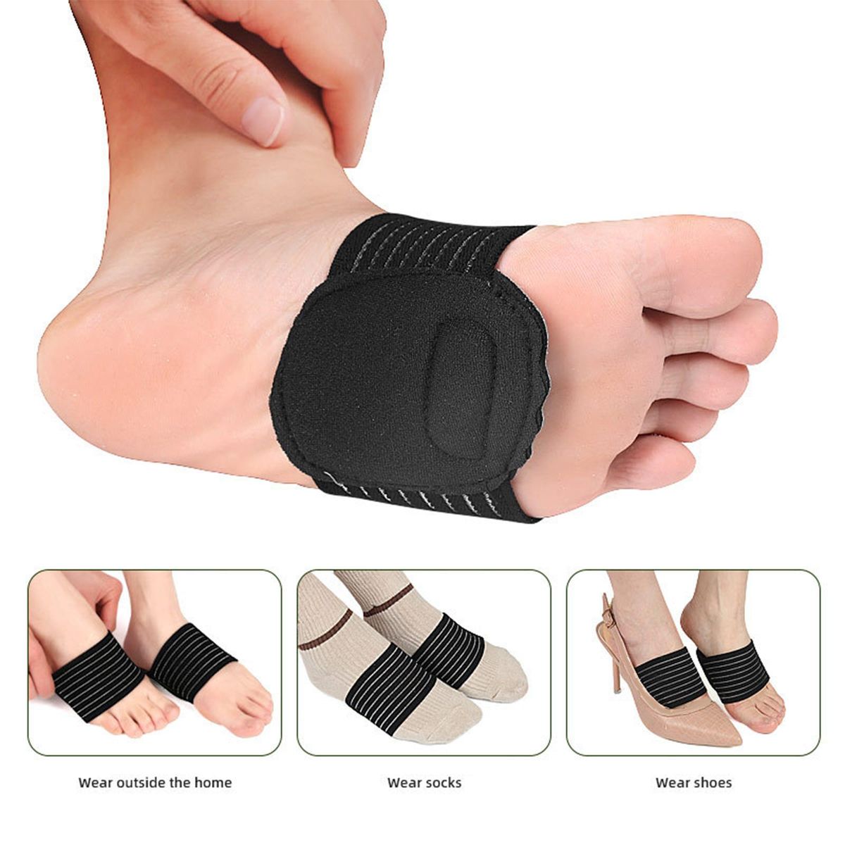 Easy to Wear: Without the need of a bulky brace, it fits well even with your shoe on, like insert insoles. Great to wear during running, exercising, playing sports, working or at home.