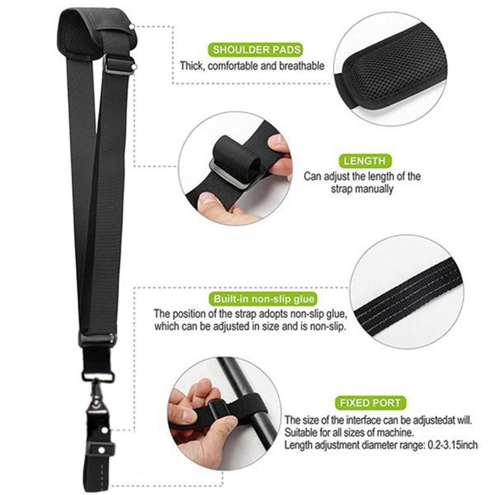 Easy to use: you need to take the belt out firstly, then adjust the port to fit the size of the machine, and next adjust the shoulder strap length to suit you, you will complete the installation job by fixing them on the machine at last