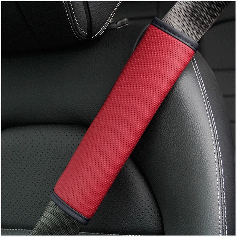 1X 2 Pieces Of Skin-Feeling Leather Fine-Hole Car Seat Belt Cover Auto Parts Driver's Shoulder Pad Safety Belt Protective Cover