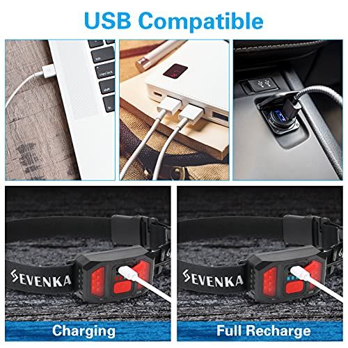 - What You GotBest gift hoie. Pakage inludes 2 head lamps with 2 miro-usb harging able. Youll love our SENVENKA broad beam headlamp and the fat that every headlight is individually tested, so you an be sure it will arrive in good working ondition. One of memorable presents that you an give! Note: Please fully reharged it before first use. Red indiator light is on when harging, blue light when fully reharged.