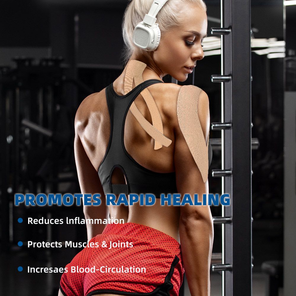 - Our sports recovery tape is made of hypoallergenic materials, with less glue, making it more compliant with the skin, minimizing sensitization, and protecting your skin.