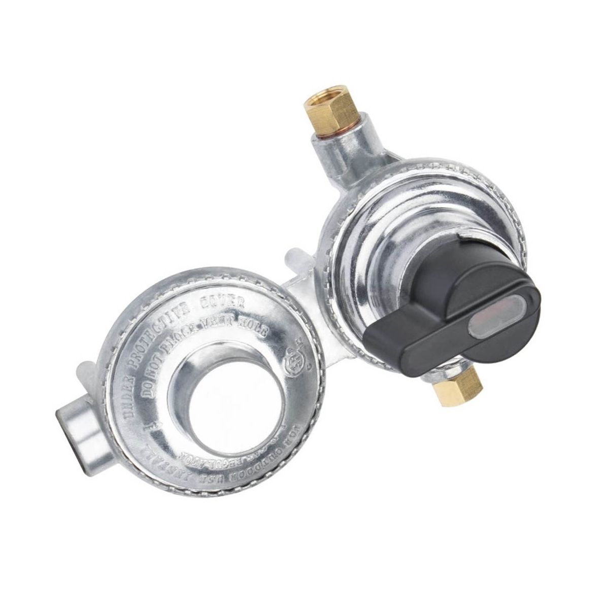 [Upgraded 2-Stage Auto Changeover LP Propane Gas Regulator]This Rv Propane Regulator allow you to hook up 2 Propane tanks and automatically switches from primary to reserve tank when primary is empty and . The indicator will changes color to let you know when a tank has been depleted and needs to be refilled also remind you switching to the backup tank. For with dual propane tanks allow removal of empty cylinder for non-stop refill without interrupting propane supply.