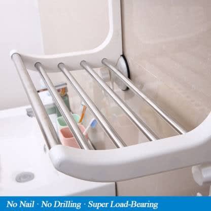 This is another new and improved bathroom/toilet rack solution and create an organized space in your bathroom with this Wall Mount Bathroom Shelf without wall drilling. It features an easy to install, space saving wall mount design, and has a load capacity of 1.5kg. Install it near your bathroom sink to hold your toothbrush, toothpaste, face cream, soap etc, or install it in your shower area to hold shampoo, conditioner, shower gel and other knick knacks.This is another new and improved bathroom/toilet solution and create an organized space in your bathroom with this Wall Mount Bathroom Shelf. It features an easy to install, space saving wall mount design, and has a load capacity of 1.5kg.