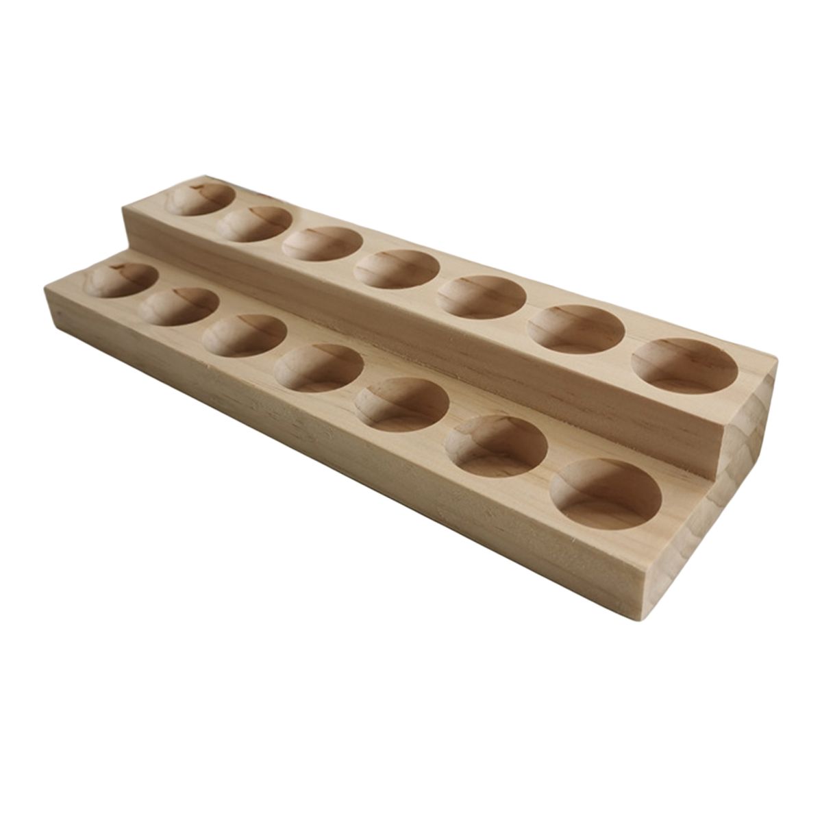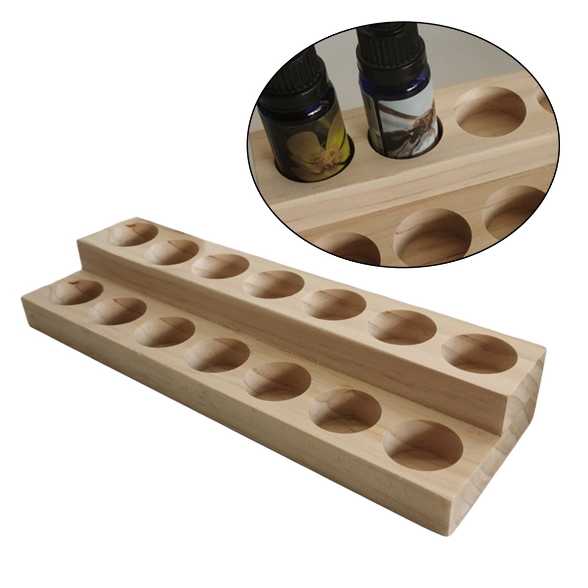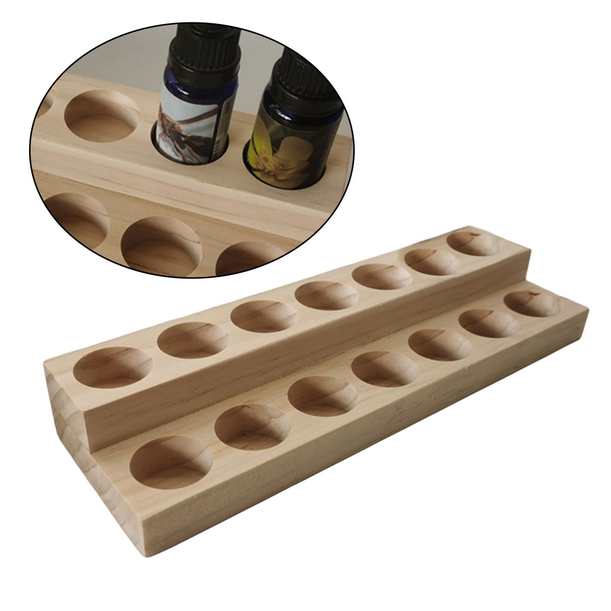 Practical 2-layer display design, displaying oils from low to high. Includes 14 round-hole slots, which can hold 15ml bottles.