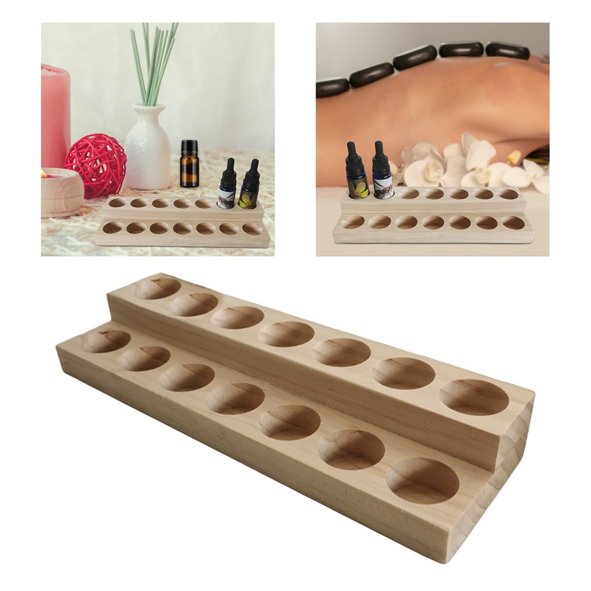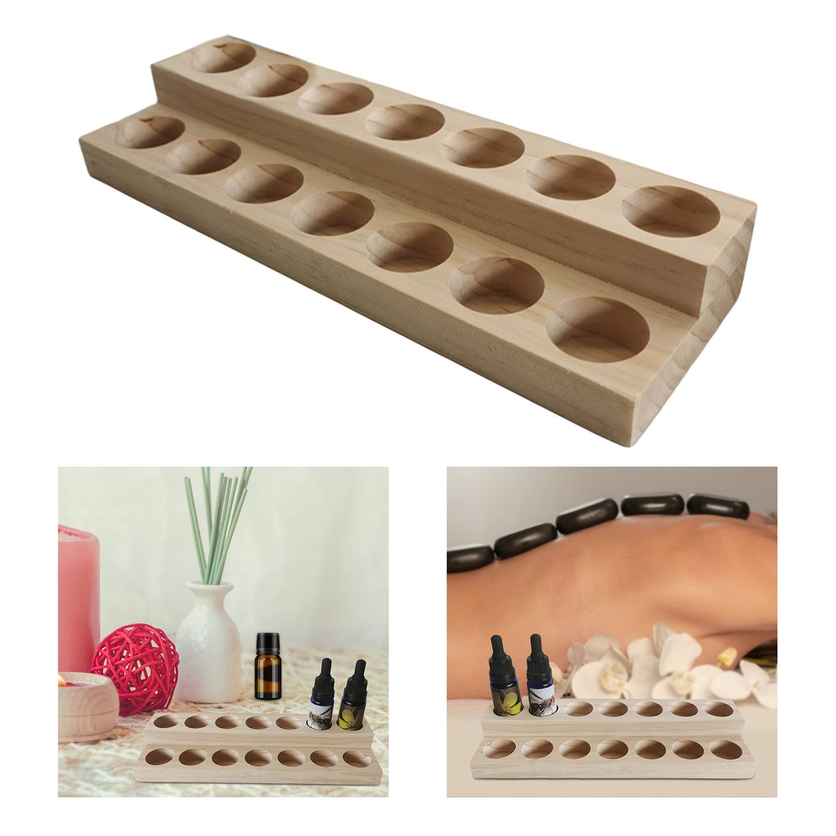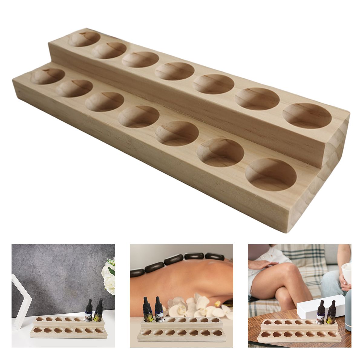 Practical 2-layer display design, displaying oils from low to high. Includes 14 round-hole slots, which can hold 15ml bottles.
