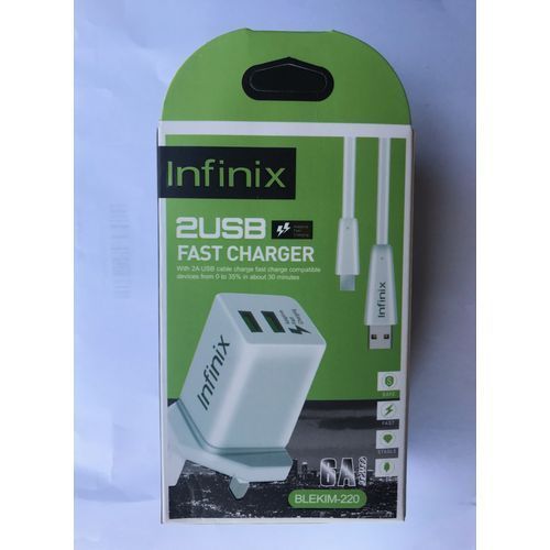 This universal Flash Charger for Infinix charges your Infinix at a very fast rate. A thirty-minute charge will get the mobile phone to 75% of battery. With 3x faster charging speed than conventional chargers, Flash charging is a feature supported by Infinix devices that allows your device to charge 3× faster than normal... It enables your battery to acquire more juice in less charge time Adaptive Fast Charger This universal Flash Charger for Infinix charges your Infinix at a very fast rate. A thirty-minute charge will get the mobile phone to 75% of battery. With 3x faster charging speed than conventional chargers, Flash charging is a feature supported by Infinix devices that allows your device to charge 3× faster than normal... It enables your battery to acquire more juice in less charge time Adaptive Fast Charger This universal Flash Charger for Infinix charges your Infinix at a very fast rate. A thirty-minute charge will get the mobile phone to 75% of battery. With 3x faster charging speed than conventional chargers, Flash charging is a feature supported by Infinix devices that allows your device to charge 3× faster than normal... It enables your battery to acquire more juice in less charge time Adaptive Fast charger.