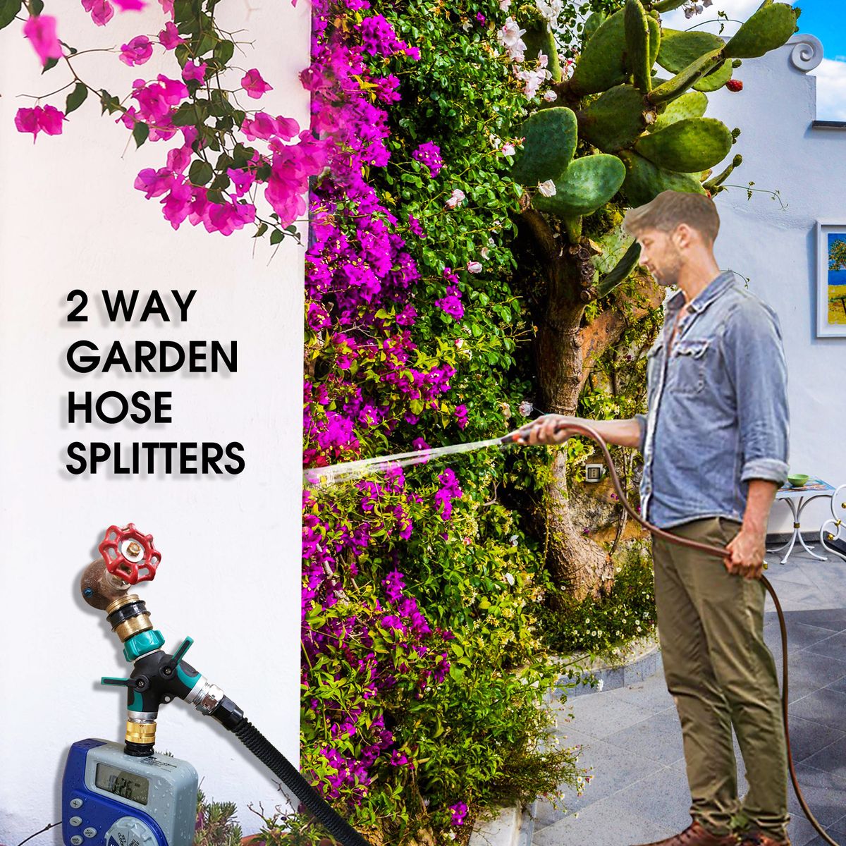 [2 Way Splitter]The hose splitter has 2-way connectors which could convert 1 spigot into 2 high-flow water sources.