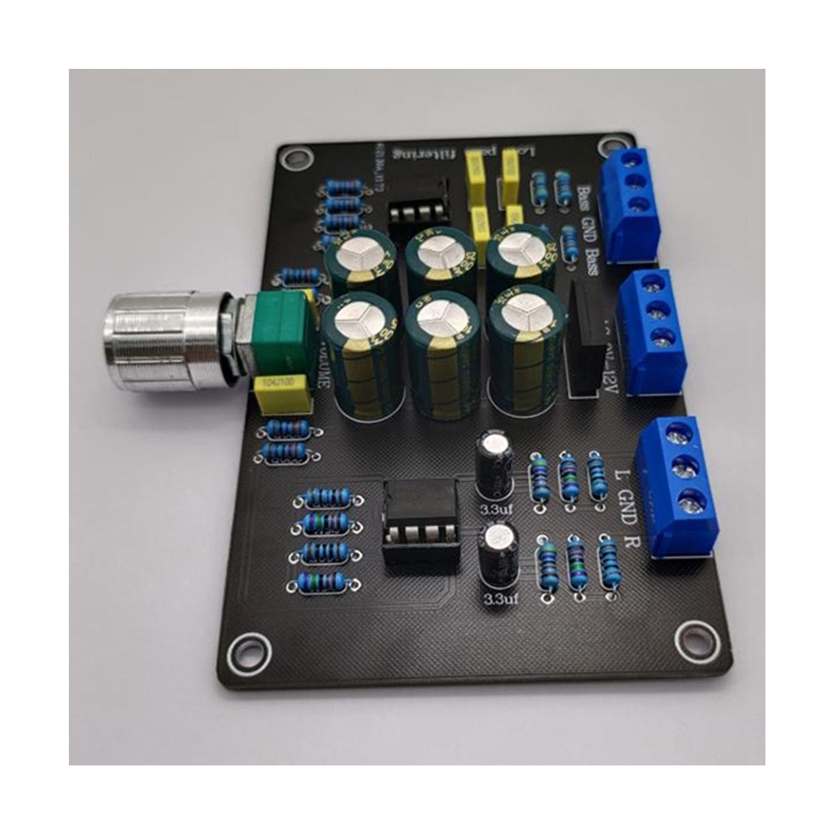 This module is a subwoofer processing circuit powered by , which is also known as a low-pass filter. The output terminal is connected to a common pure rear stage power amplifier, which can form a subwoofer power amplifier.