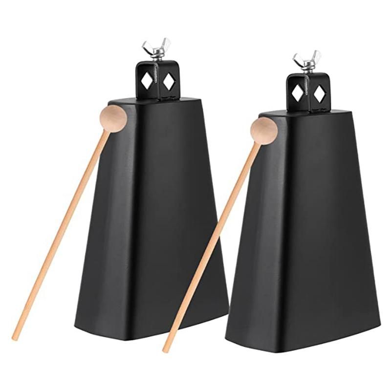 Buy 2 x 8 Inch Manual Percussion Cowbell with Wooden Sticks for Drum Set Sports Home Farm Black in Nigeria