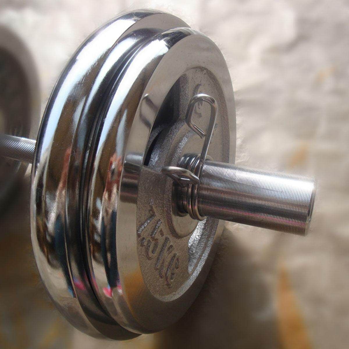 Every gym or home workout area requires one or more pairs of Olympic bar weight clips! The Fitness Olympic Bar Clips fit exactly onto standard 2” diameter Olympic barbells to safely lift barbells without fear of the plates falling off. All you need to do is squeeze the handles together to pull off and remove or add weight plates and then replace.