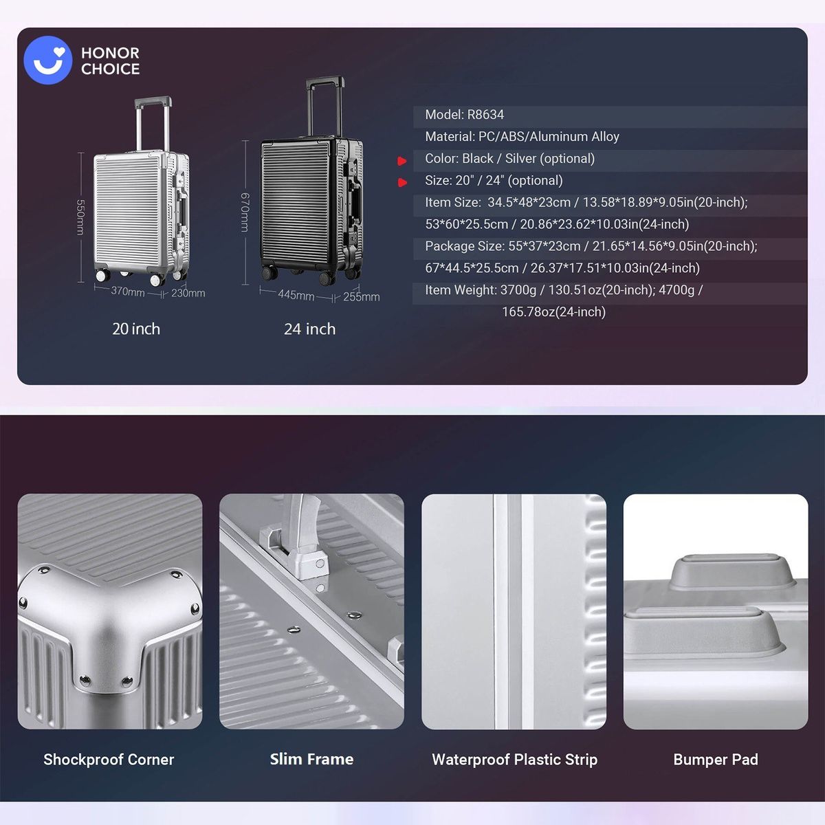 Size: 34.5*48*23cm / 13.58*18.89*9.05in(20-inch); 53*60*25.5cm / 20.86*23.62*10.03in(24-inch)