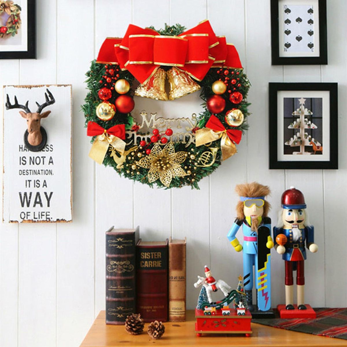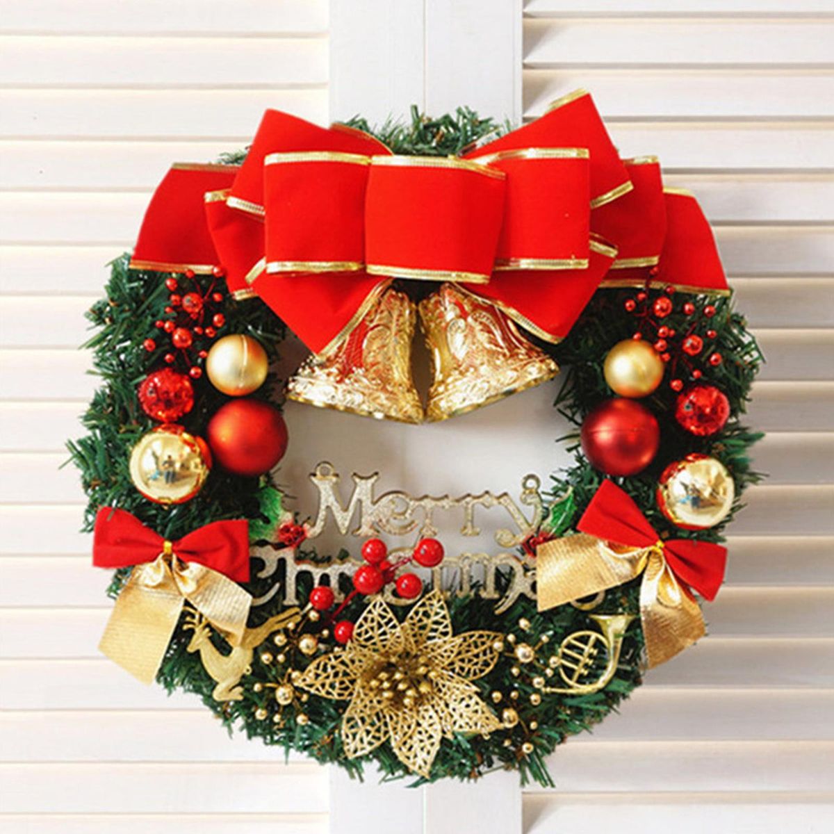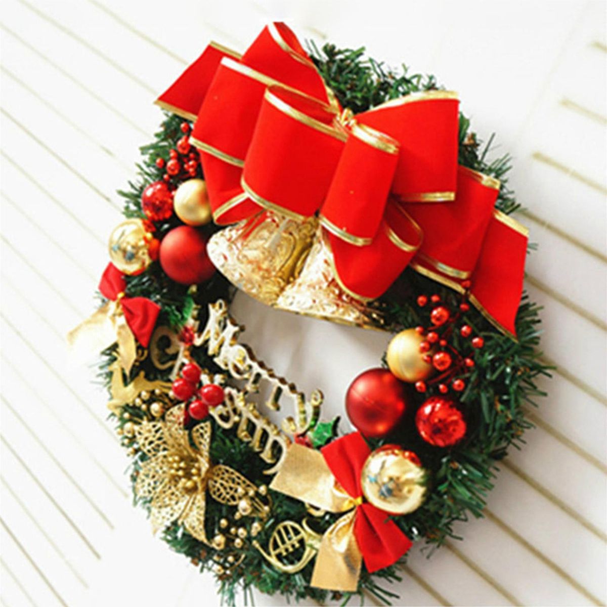 Buy 20 Inch Christmas Wreath With Bow Knot Bell Balls Merry Christmas Hanging Garland Artificial Wreath for Front Door Wall Party Decoration in Nigeria