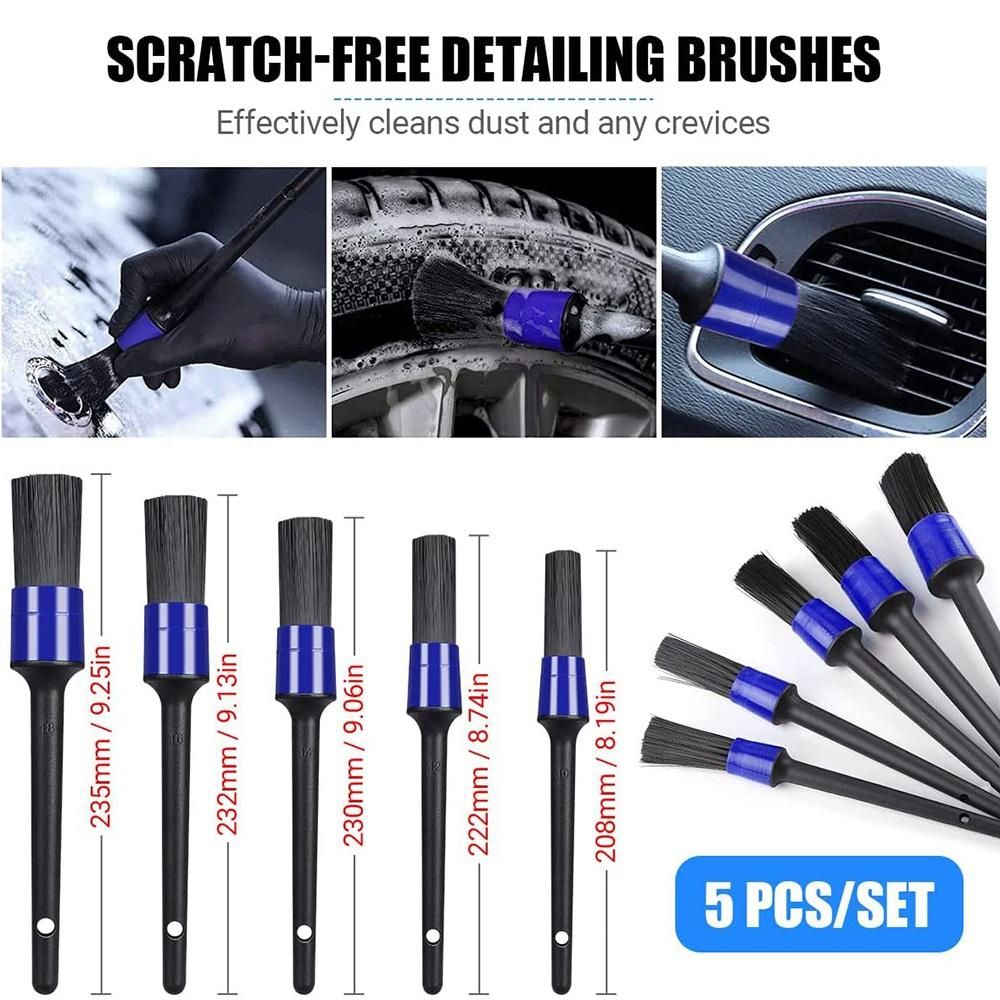 [More Than Just Car Wash]The car detailing brush kit to apply to cars, trucks, motorcycles, bicycles, RVs, boats, wheels, tires, rims, spokes, grills, engine bays, exhaust tips, bumpers, inner fender, undercarriage, vents, etc. It will be your best helper for other cleaning tasks besides car washing, even if it is given as a gift, it will not be disliked.