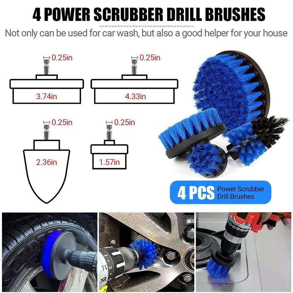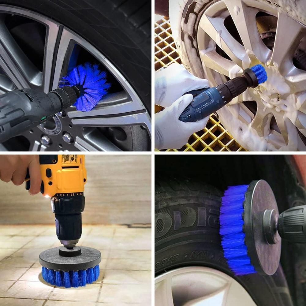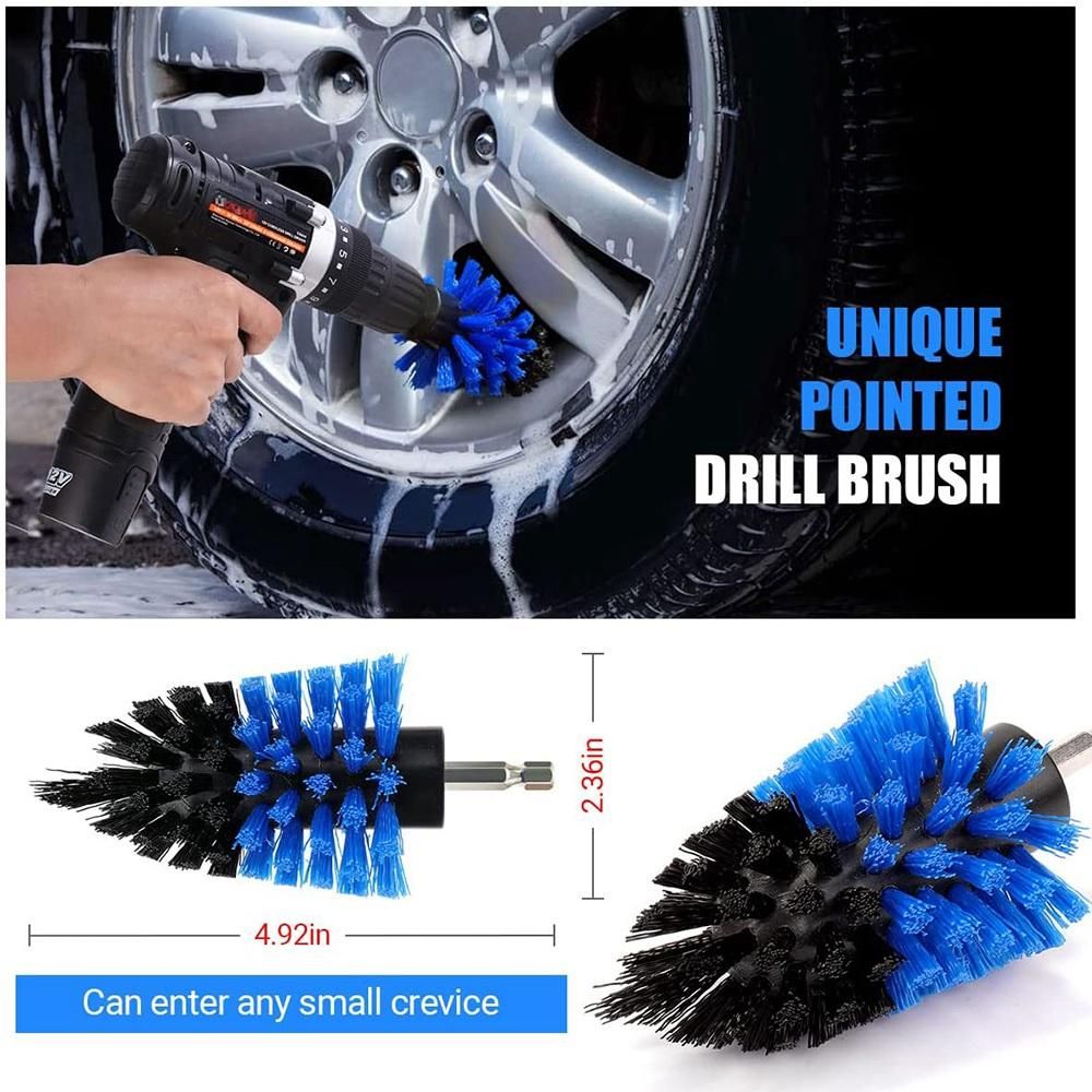 [Whether it is cleaning the inside or outside of the car, it can be satisfied]Drill brush attachment set, washing automotive exterior and interior surfaces (clean bathroom surfaces, wheels, shower, toilet, kitchen, bathtub and carpet etc) Truly a perfect way to make every nook and cranny of your house & car absolutely spotless. They come in different sizes, the most unique is the design of the pointed brush, which can be easily inserted into the space of the hub for cleaning, very efficient!