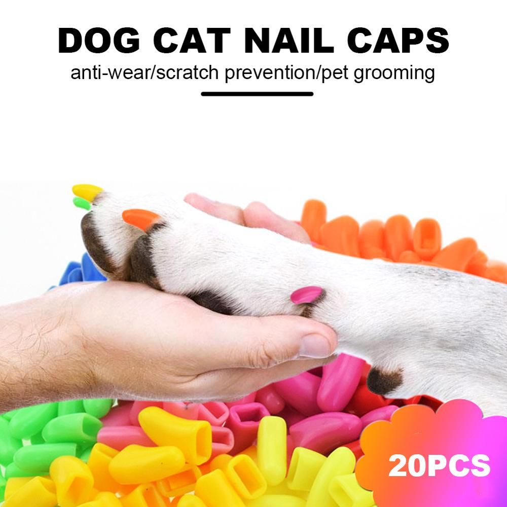 1X 20 Pcs Dog Cat Nail Caps Soft Silicone Anti-scratch Paw Nail Cover Puppy Claw Grooming Manicure Dog Cat Nairooming Supplies