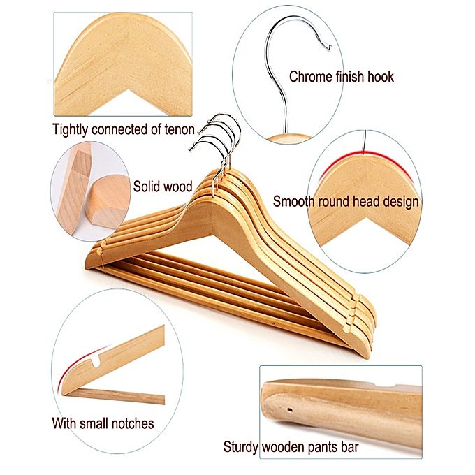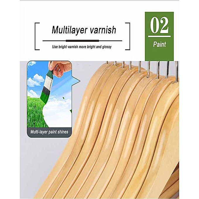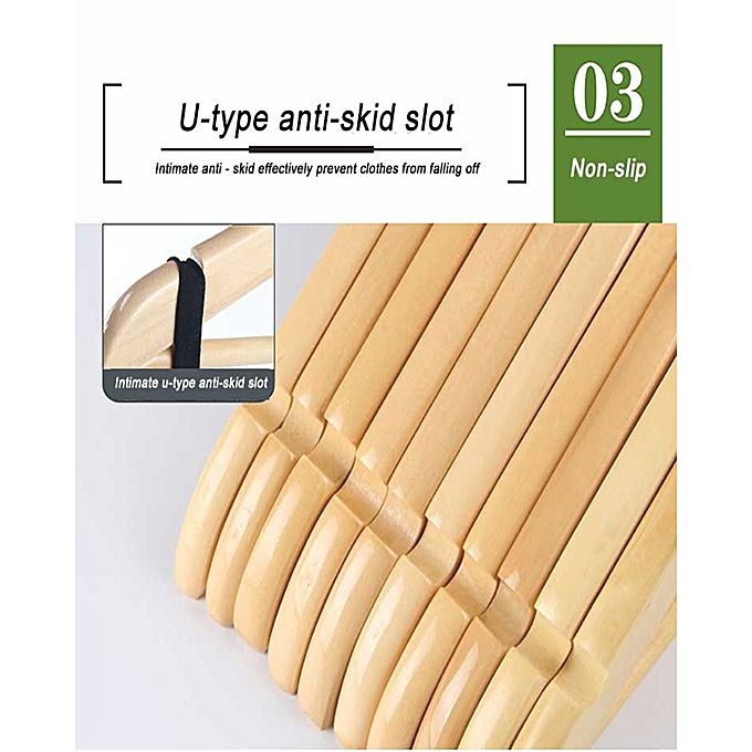 Super Smooth Finishing Precise Notched Design - Ideal for Suits, Coats, Jackets, Pants, Dresses in your wardrobe. This is a high quality wood hanger which enjoys a high reputation from our customers around the world. The solid wood material creates a sturdy base perfect for heavier suits, jackets, pants, shirts, and more while the smooth wood finish prevents your clothes from snagging.The solid wood construction is strong and durable enough to hold your heaviest clothing year-round. Additionally, each hanger comes with a horizontal bar to hold heavy jeans or other pant types without damaging.The hanger's slim and sleek design allows you to maximize space in your closet while keeping your clothes secure when being stored.Treat your favorite and heaviest clothes to the premium hanger they deserve with wooden suit hangers.These hangers would be a wonderful room-saver in your wardrobe and keep tidy and clean.