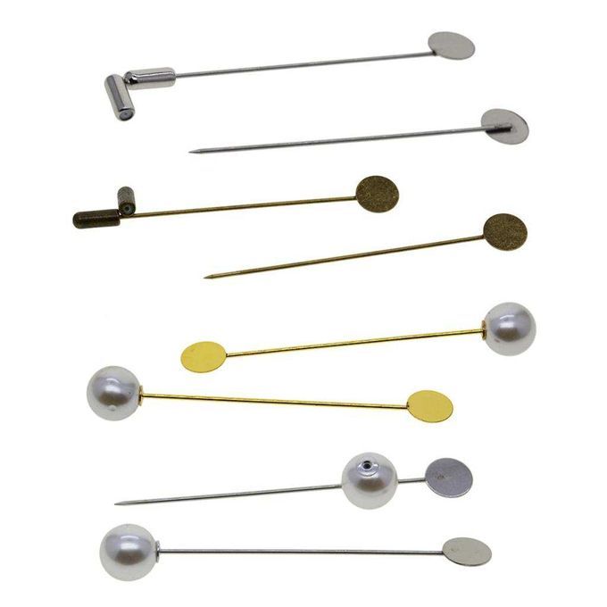 Pearl: Total Length: 80mm; Pin Length: 70mm; Round Bezel Setting Dia: 10mm