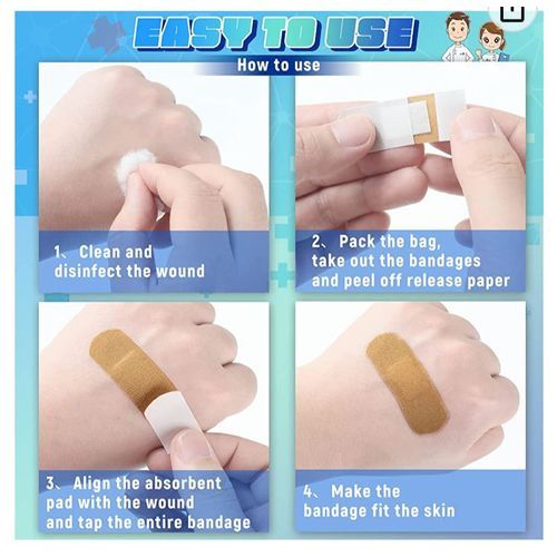 Non-stick pad: The center of each plaster has a non-stick pad that protects the wound and helps it heal faster.