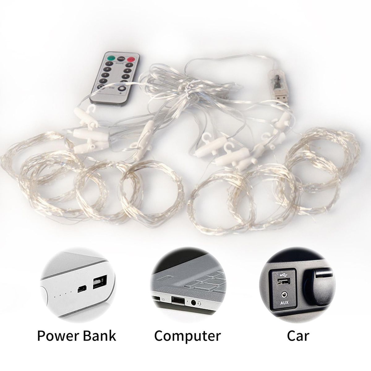 Buy 20 X 10FT Curtain String Lights USB 600LEDs Curtain Fairy Lights Christmas Decorative Hanging Lights Copper Wire Waterfall Lights with 8 Lights Modes Remote Control for Wedding Party Home Bedroom in Nigeria