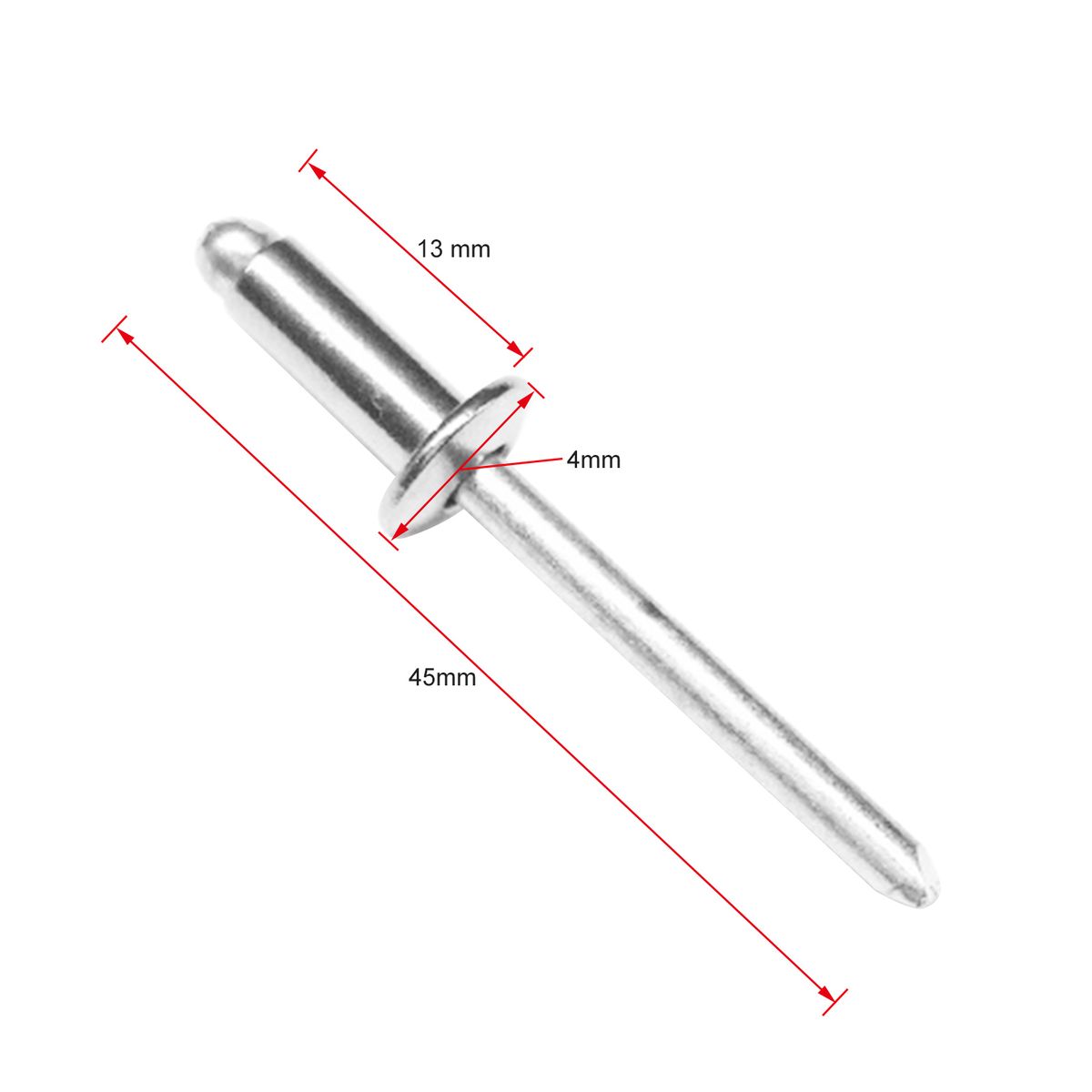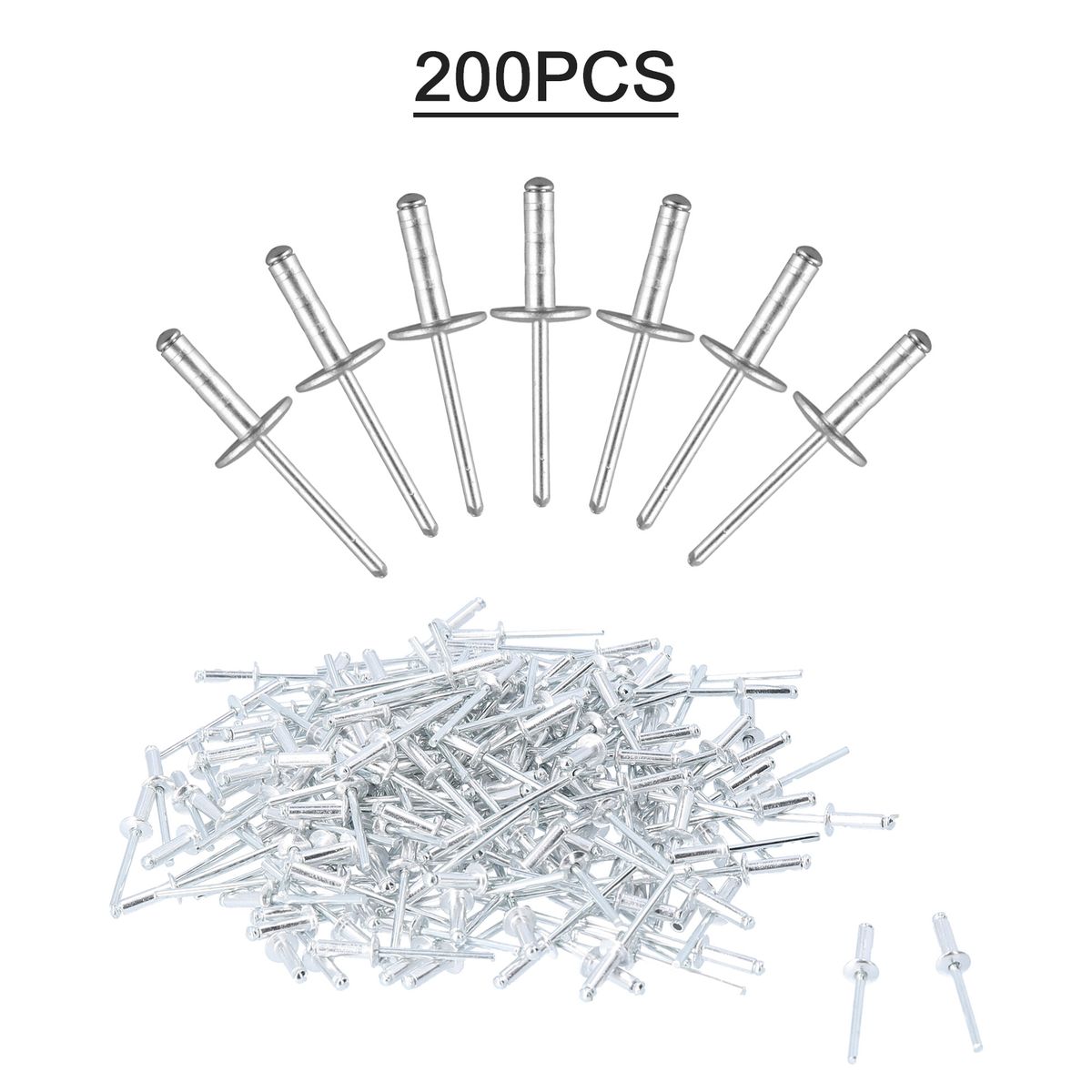 200 pcs, (4x13mm) pop rivets with aluminum large flange.