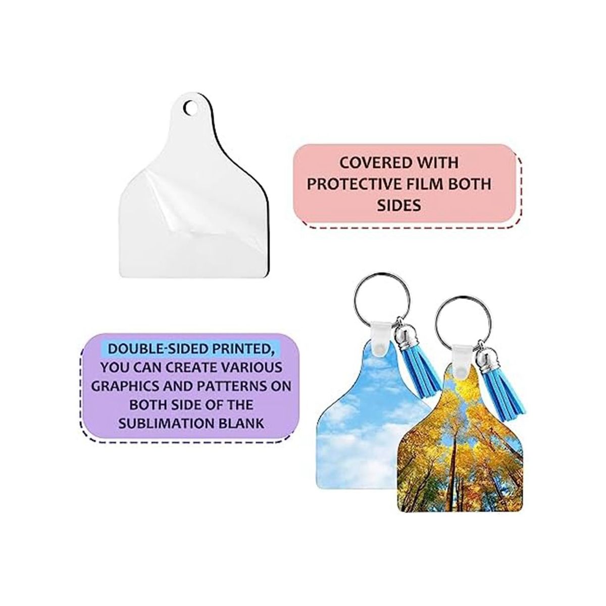 Meaningful Gifts: our sublimation keychain blanks double sided make meaningful and thoughtful gifts that your recipient will love and cherish; Whether it is for a birthday, anniversary, graduation or other special occasions, which will make your recipient feel special and loved