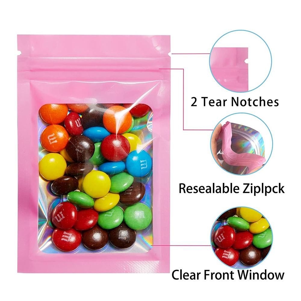 [HOLOGRAPHIC RAINBOW COLOR]- foil Zipper Closure bags come with holographic rainbow color in the back and transparent in the front in order to display the product cleay. When displayed indoors, you 't need to have lots of lighting to see the beautiful rainbow color.