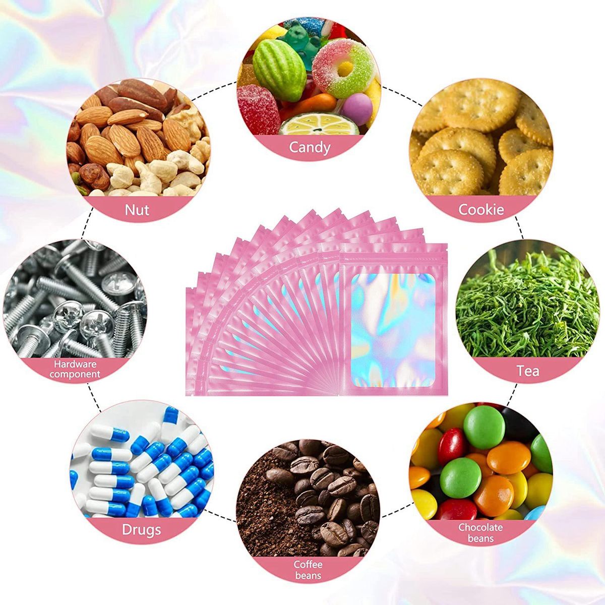 [WIDE USES]- holographic bags is waterproof after seal, good to coffee, candy, sugar, rice, baking, cookie, nuts, dried fruit and flowers, , party favor and so on. It is also suitable for small business to package jewelry, eyelash,lip gloss, key chain, cosmetics, soap, electronic accessory or any small objects.