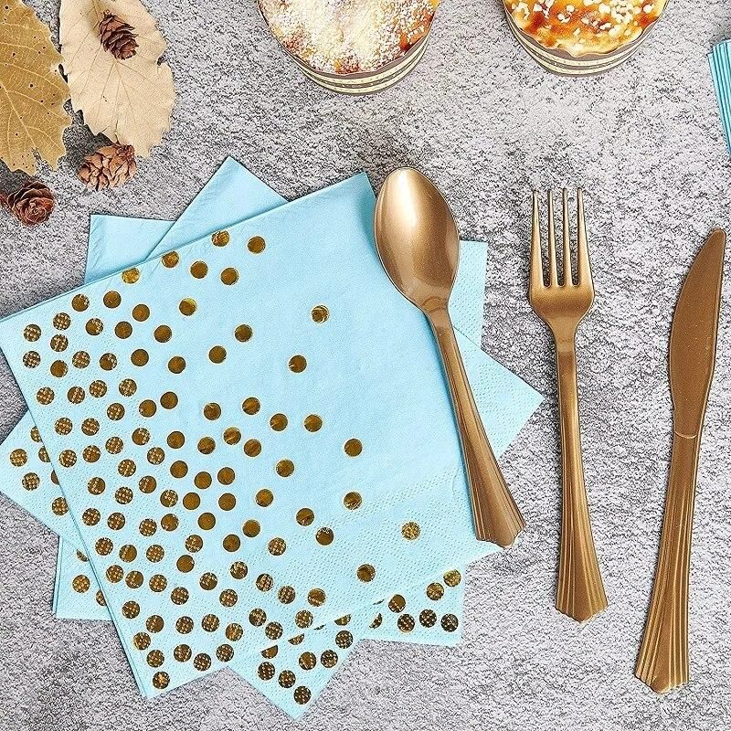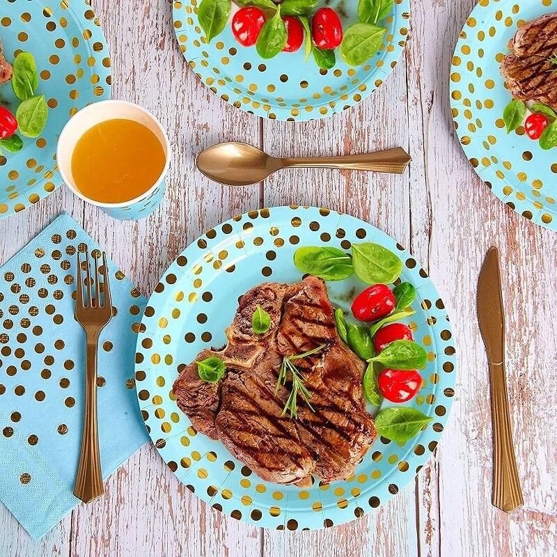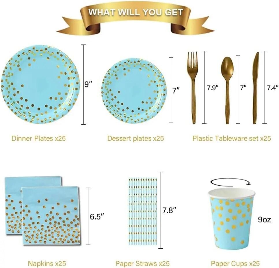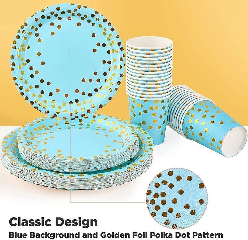 Buy 200 Piece Blue and Golden Dot Dinnerware Disposable Party Blue Paper Plates Napkins for Baby Shower Graduation Birthday Wedding in Nigeria