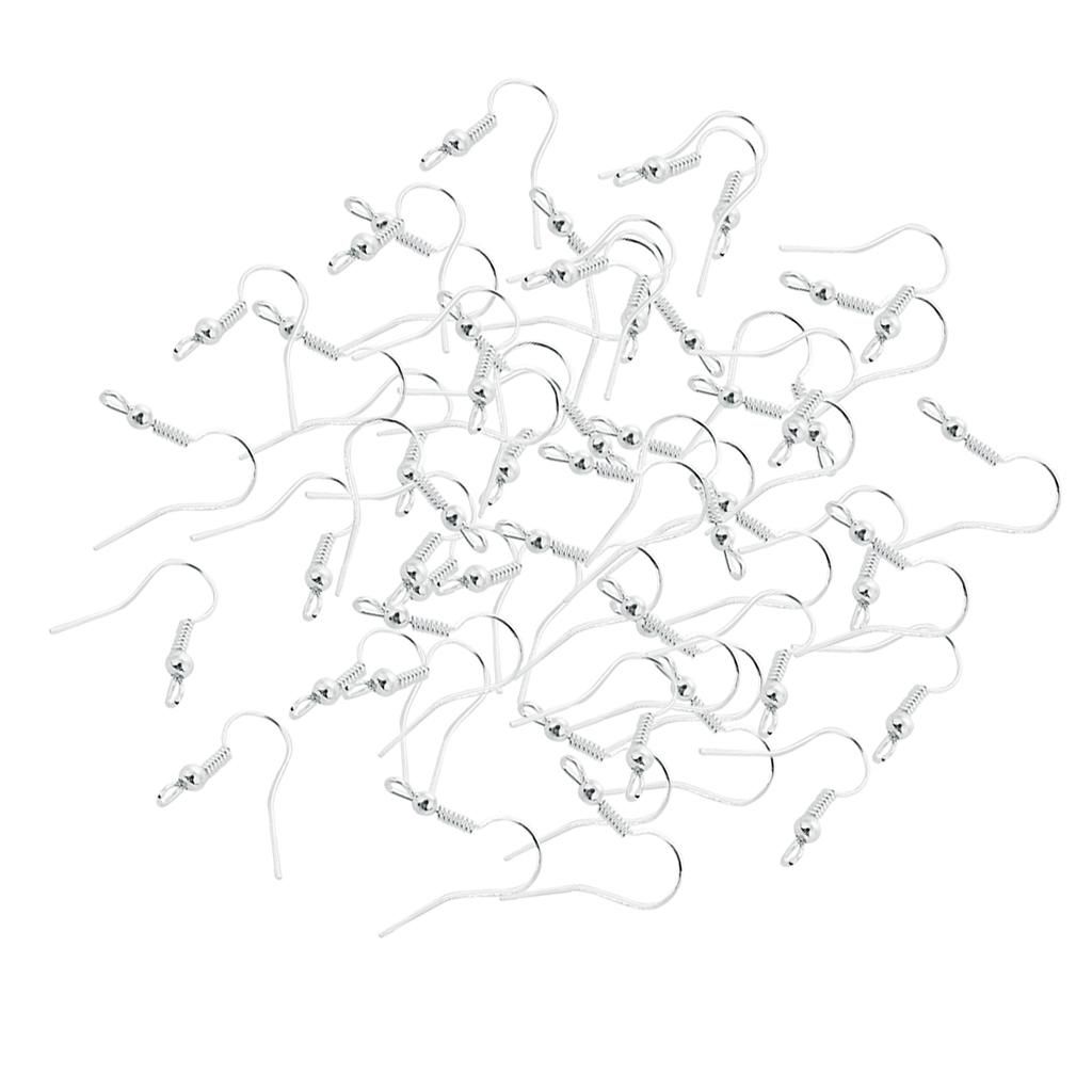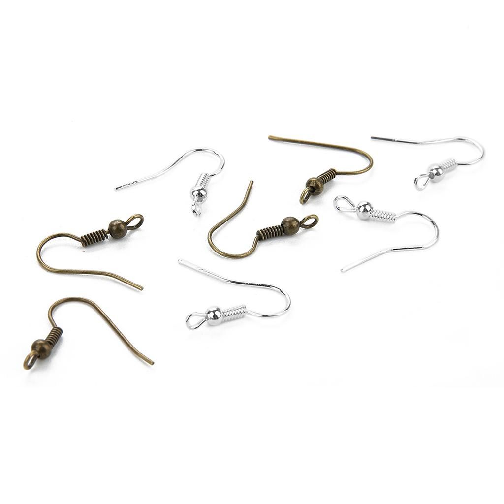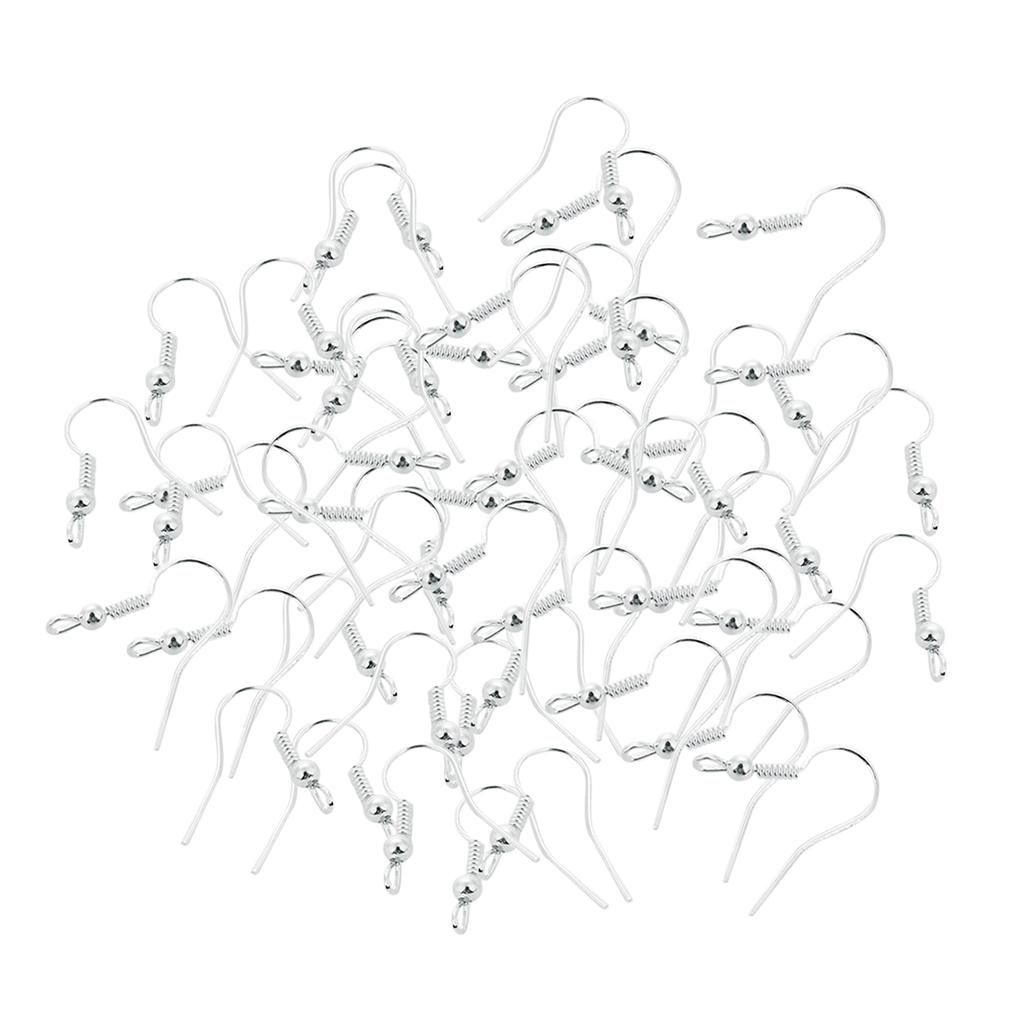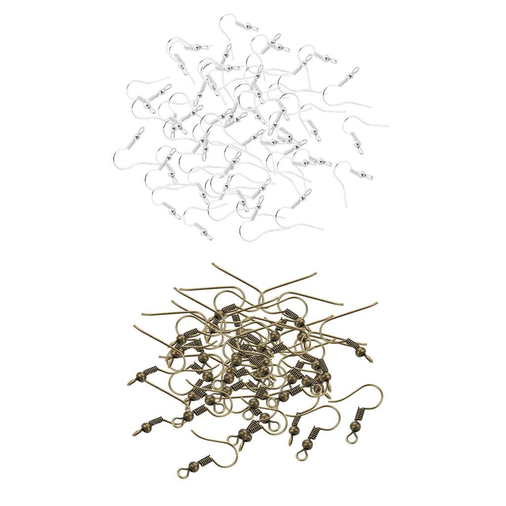 200 Pieces Earrings Hook Ear Wire with Bead and Spring DIY Findings Silver