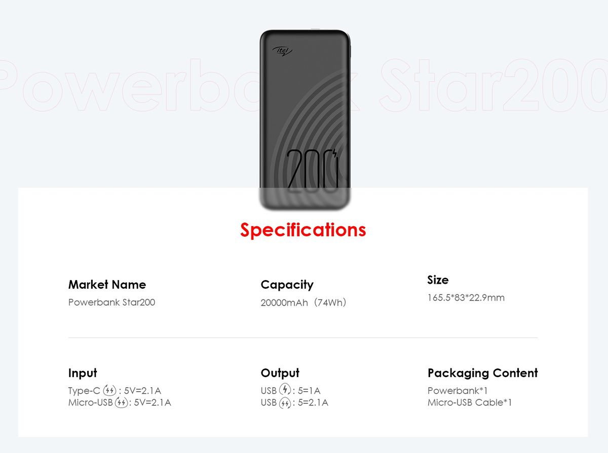 - 1 x Itel Star 200 Strong 20,000mAh Power Bank
