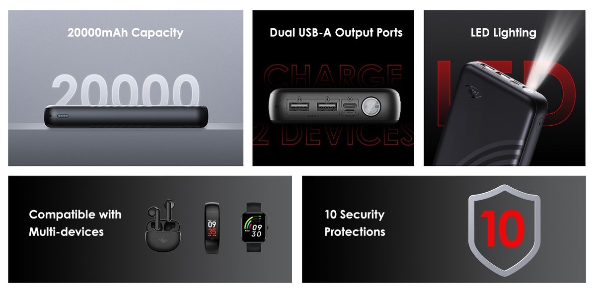 Handy: It feels incredibly compact for a 20000mAh power bank, weighing just only 21mm thick. Grippy design is easy to hold, easy to toss into a bag and incredibly portable.