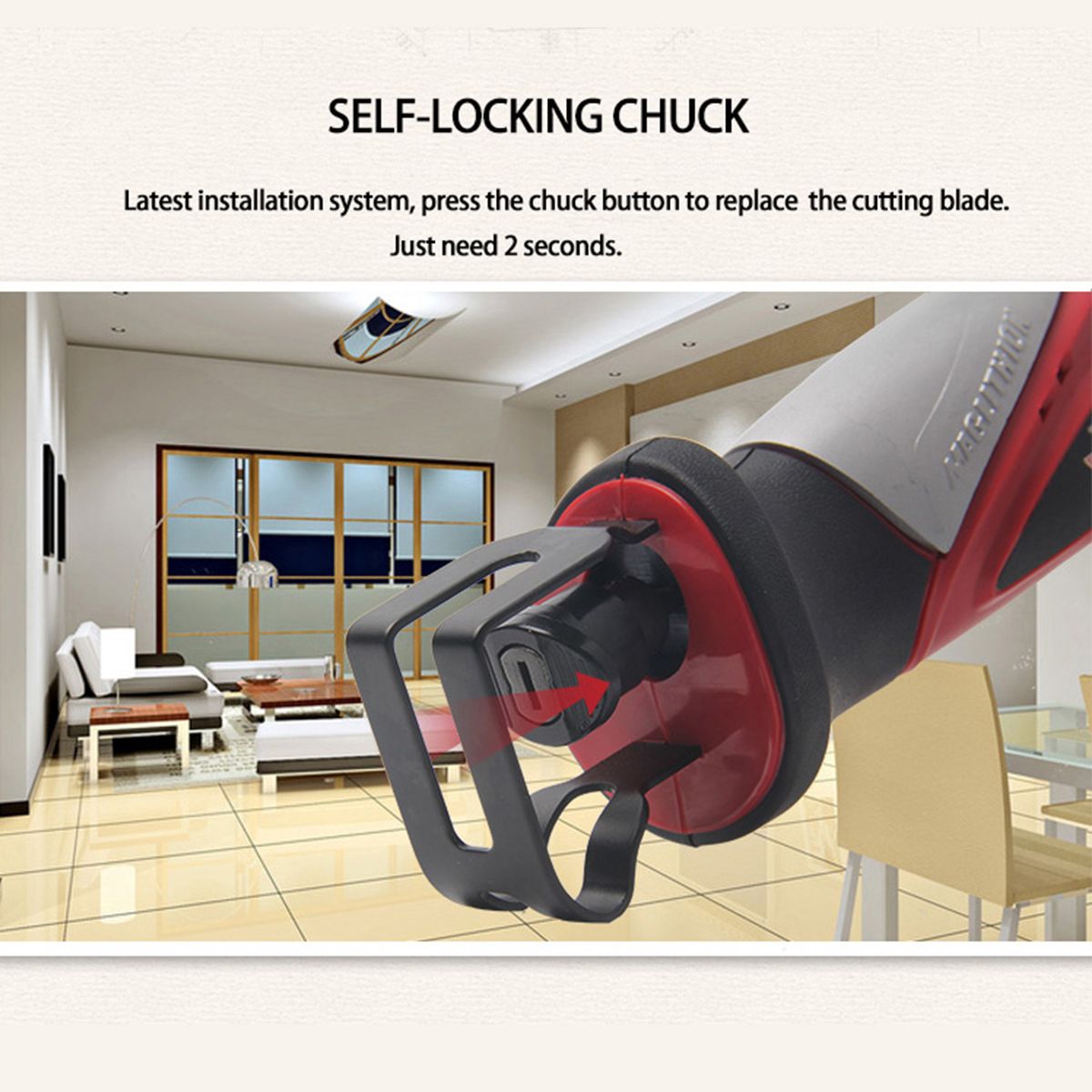 -Self-locking chuck, press and hold the chuck to insert the , 2S for installation and replacement.