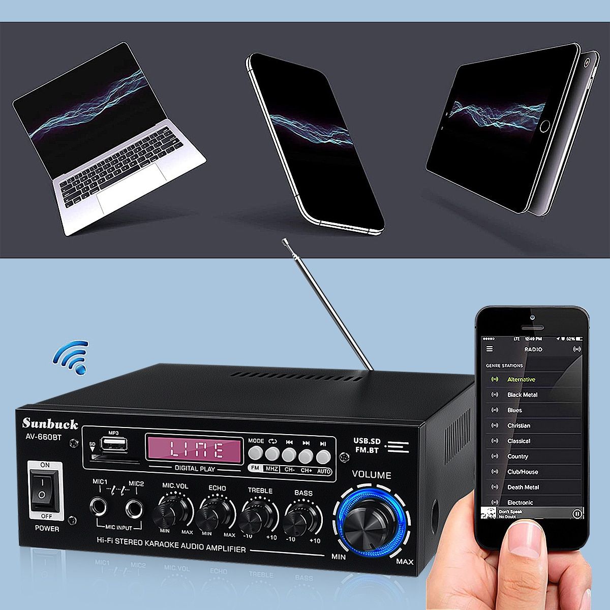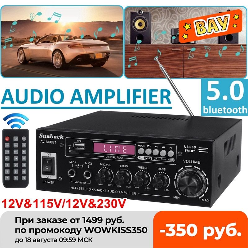 1X 2000W AV power amplifier 2CH bluetooth5.0 Audio Home Theater Amplifiers DC 12V 110V/220V Support EQ FM SD USB 2 Mic
