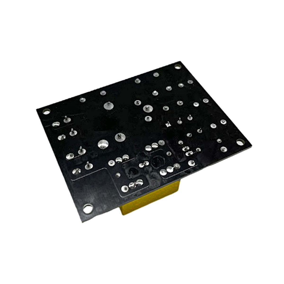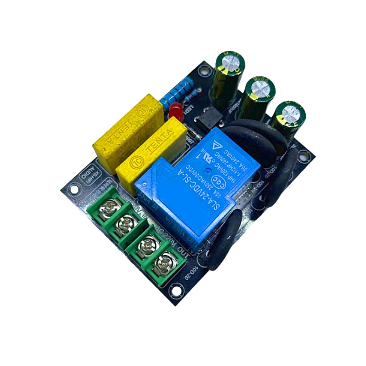 The high-power soft-start board uses FR4 fiber PCB the size is 74mm X 57mm X 16mm the height of the finished board is only 26MM the circuit is original and new design the relay short-circuits the power resistance after the power-on delay and the power resistance adopts 4 pieces of NTC 10D-20 The thermistor with negative temperature coefficient can make the load voltage rise smoothly to the mains