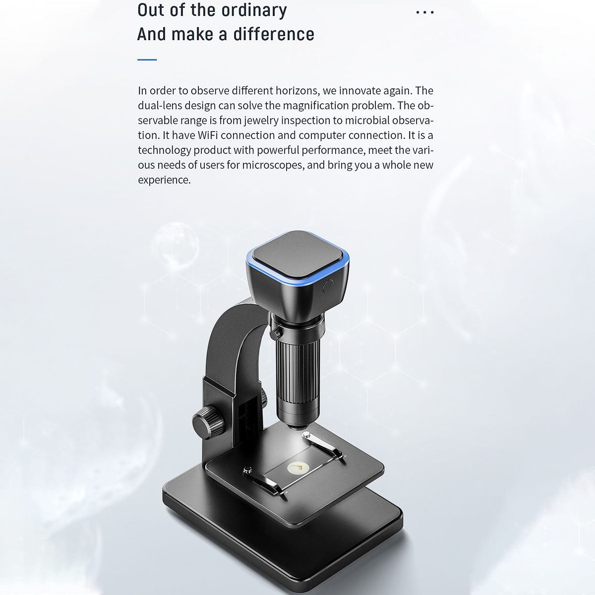 Suitable for jewelries inspection, biological studies, skin examination, plant dissection/examination, circuit board maintenance and so on.