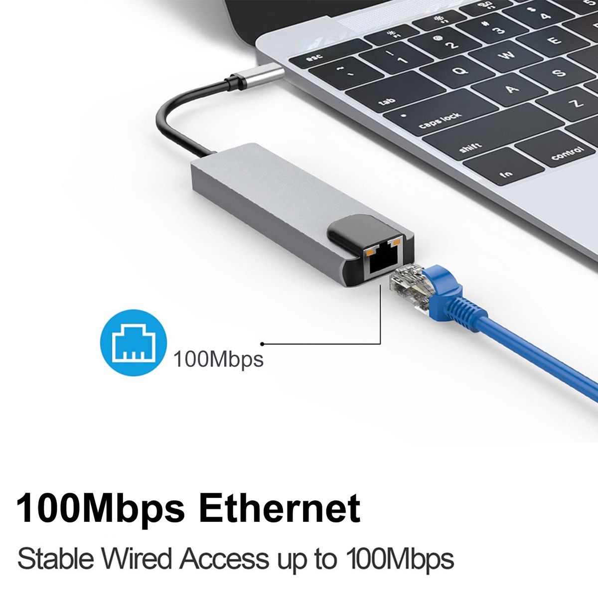 * USB-C delivery port offers up to 87W for and safe to your device. Rj45 Ethernet port provides stable wired access of up to 100Mbps.