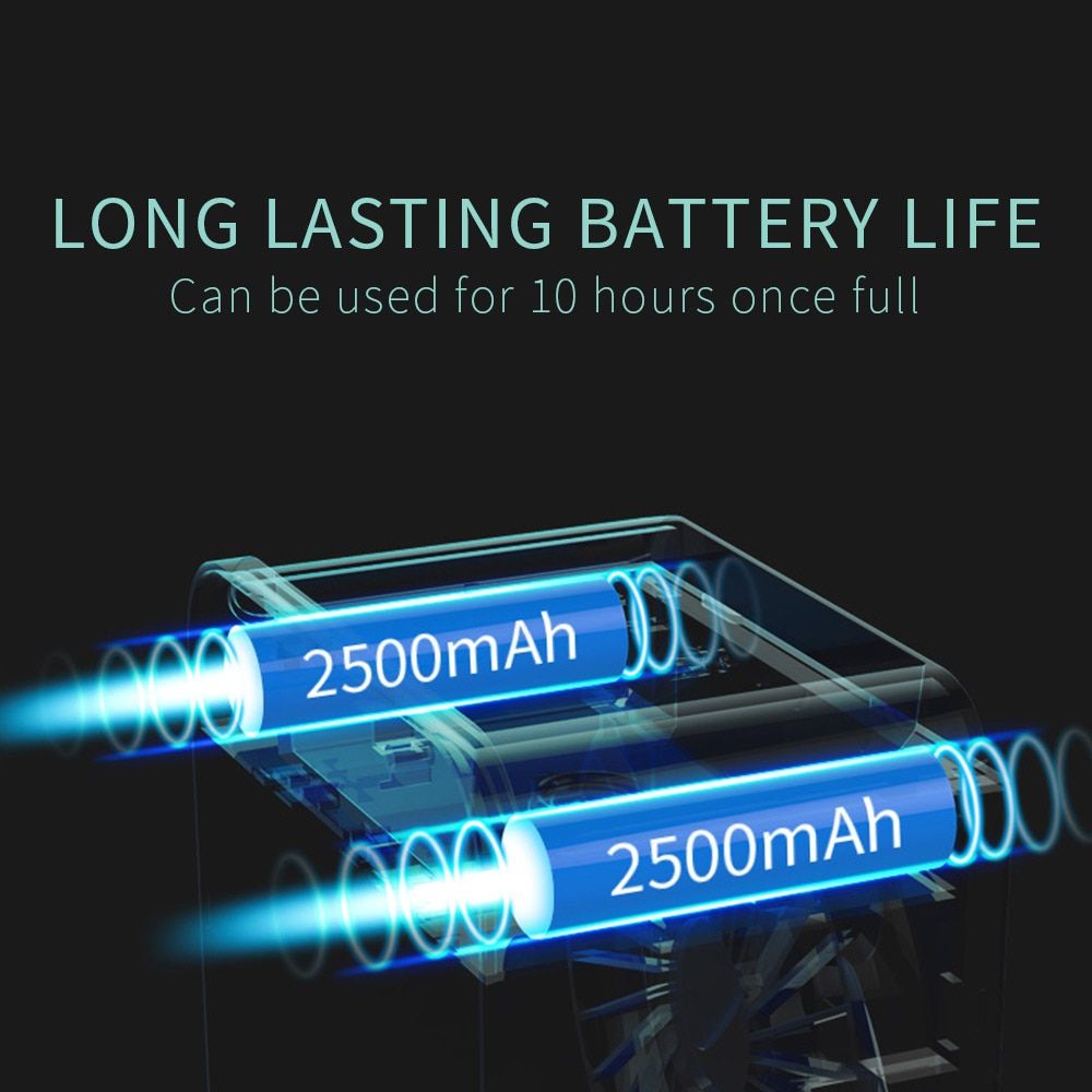 Product material: ABS Product size: 122mm*108mm*142mm Water tank capacity: 200ML Power cord length: 1.2m Product weight: 370g Weight with pack: 450g Color: green,white Input: 5--1A Battery model: 18650 lithium battery Use power: 4W Battery capacity: 2400 mAh Rated oltage: 220-240 Use time: first gear 11H / second gear 6 / third gear 5H