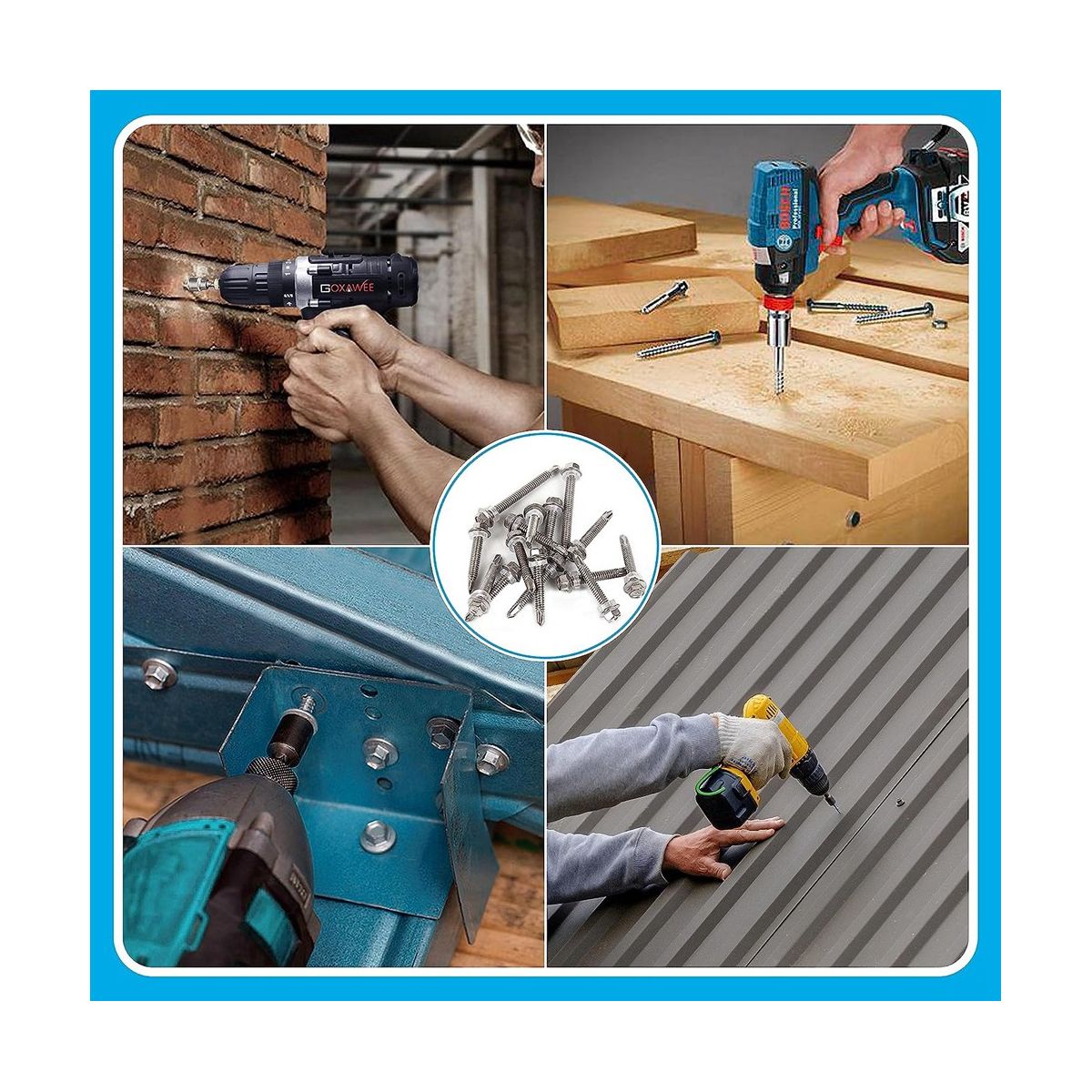 Easy to Use: the hexagonal head is designed to ensure firm adsorption, and the tip of the screw is designed to be sharp, no pre-drilling is required for operation. Perfect for use with wood, normal thickness metal, brick or other hard materials. If the electric drill is used for thicker metal layers, please keep a constant and uniform pressure.