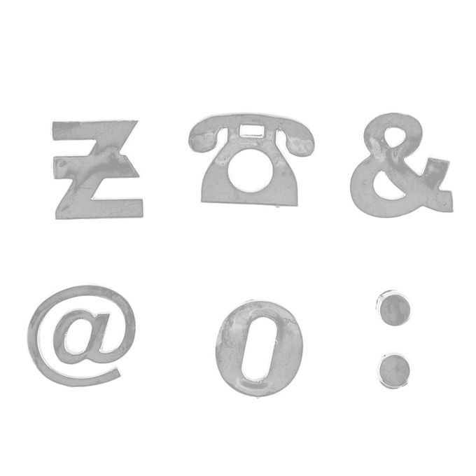 26 Alphabets (5pcs of each) 10 Numbers (5pcs of each) 4 Symbols (5pcs of each) All together, it's 200pcs lot.