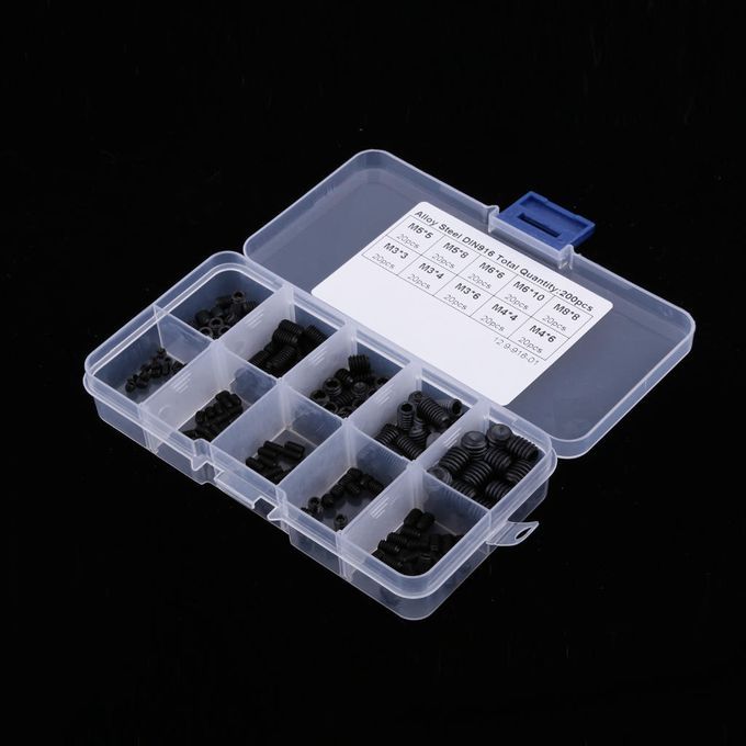 200Pcs M3 M4 M5 M6 M8 Socket Cap Head Screws Kit with Box.
