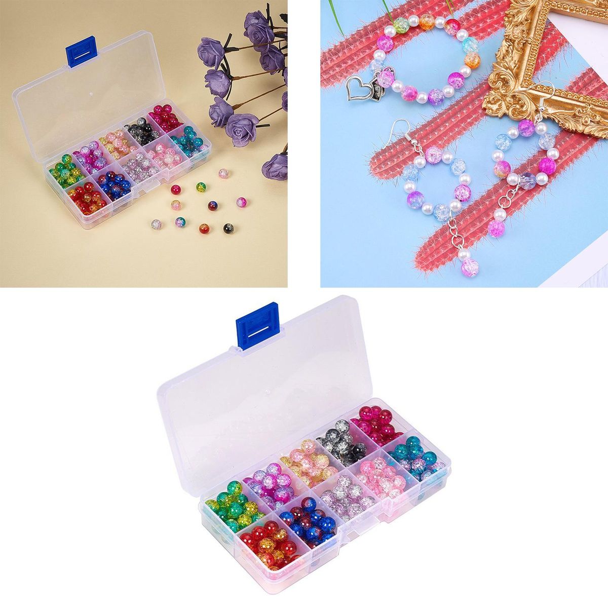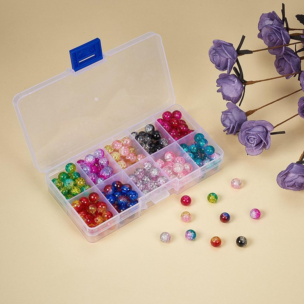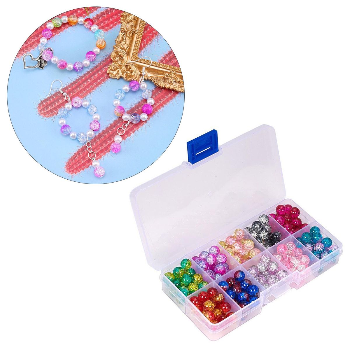 About 200 colorful glass cracked round beads set, hand beaded jewelry accessories, bead bracelet making supplies.Versatile: Glass beads in a variety of colors are great for sparking creativity. These beads can be combined with other styles of beads to DIY some amazing handmade gifts. For beading, beading, embroidery, sewing and other crafts.HIGH QUALITY MATERIAL: Craft glass beads for jewelry making are well made, durable and strong, smooth and in good shape, colorfast and not easy to break.BEST GIFT IDEAS: Crystal gemstones are the perfect gift for everyone, perfect for making bracelets, necklaces, dress decorations, jewelry accessories, earrings, gifts, clothes, shoes, glasses, and more.With storage box: The storage box has 10 compartments with fixed partitions. Each color is in its separate compartment, making it easy to organize all the beads.