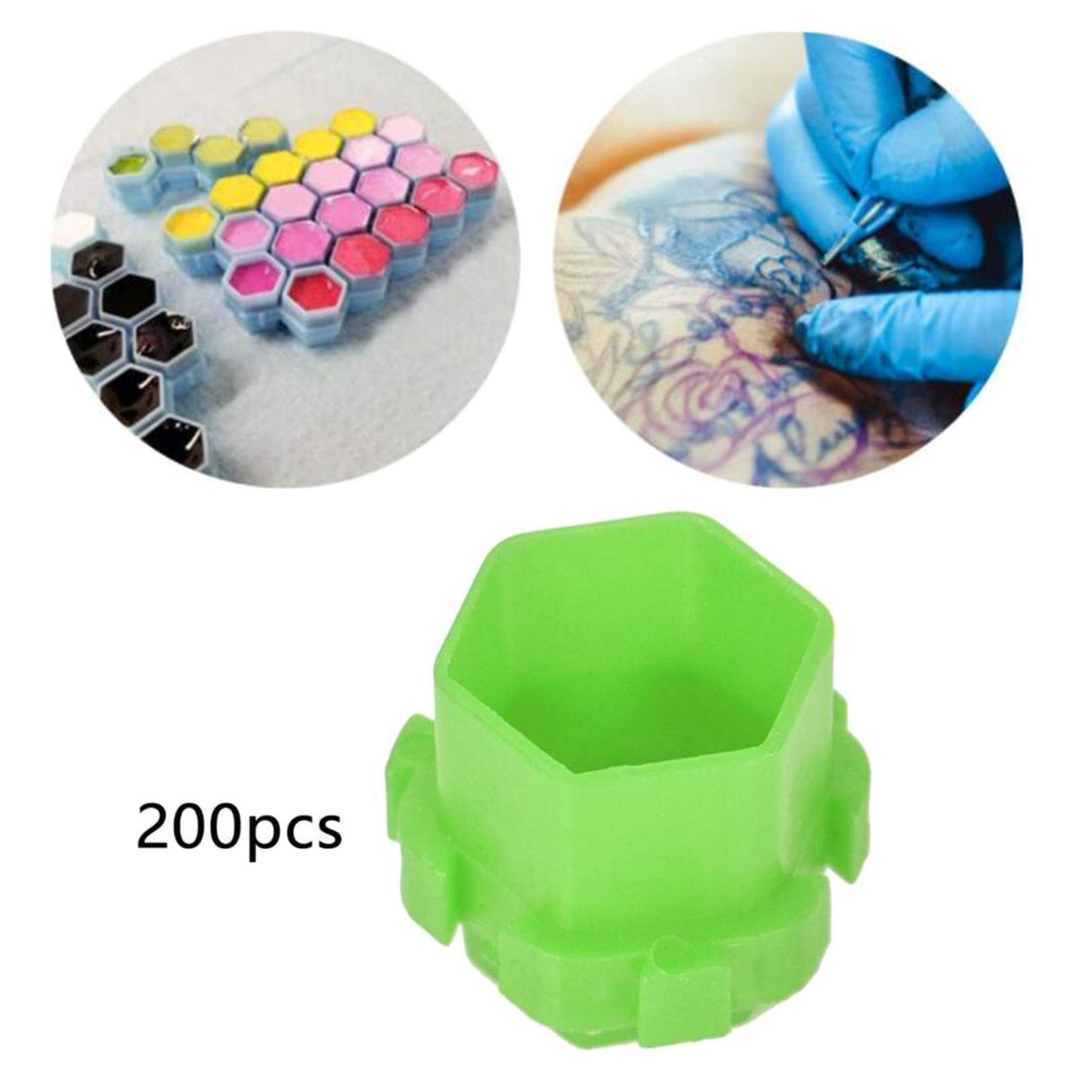 Honeycomb tattoo caps are Easy to carry, can be superimposedTattoo ink caps are Made of high quality material for durable and practical for long term use. pigment cup Do not need color rack, can be placed independentlyYou can snap tattoo ink holder at will to splice the beautiful pattern that you likeA set of 200pcs tattoo ink cup