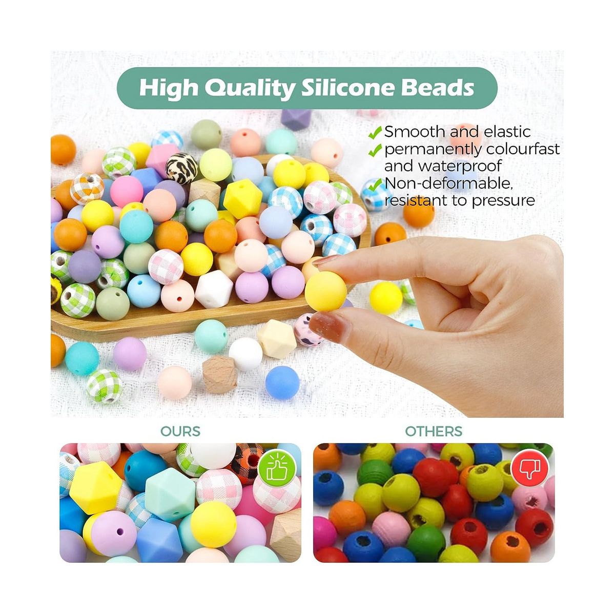 HIGH QUALITY SILICONE MATERIAL: Silicone beads are made of high quality silicone that is durable, flexible, easy to clean, and safe to use. The high quality material ensures that your keychain or other DIY craftswill stand up to daily use and retain its vibrant colors. These silicone beads are designed with convenient pre-drilled holes to thread them effortlessly onto cords. Whether you're a or an experienced , our kits offer an enjoyable and hassle-free crafting process.