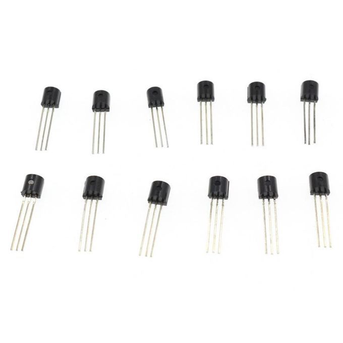 20 Pieces BC327 - 45 V 800mA 100 MHz 625 mW20 Pieces 2N2222 NPN - 40 V 600mA 200 MHz 625 mW20 Pieces 2N2907 - 40 V 600mA 200 MHz 625 mW 20 Pieces 2N2907 - 40 V 600mA 200 MHz 625 mW20 Pieces 2N3904 NPN - 40 V 200mA 200 MHz 625 mW20 Pieces 2N3906 - 40 V 200mA 200 MHz 625 mW20 Pieces S8050 NPN - 25 V 0.5A 100 MHz 1 W20 Pieces S8550 - 25 V 0.5A 100 MHz 1 W20 Pieces A1015 - 50 V 150mA 80 MHz 400 mW 20 Pieces C1815 NPN - 50 V 150mA 80 MHz 400 mW