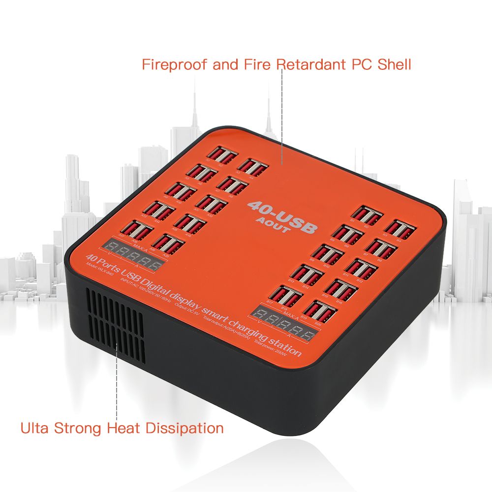 It is designed for a great solution for multi USB-chargeable devices at the same time, solving the confusion of lacking of USB-outlets for factory, hotel, hospital, school, pub, shopping mall and family safe multiple digital devices simultaneously. 40-port ports intelligently identified current which provide strong efficient supply without additional converter.
