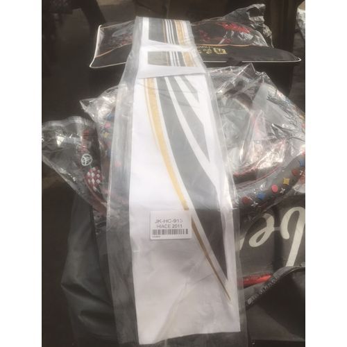 This product is a body sticker/decals for Toyota Hiace bus 2011 model. It helps add beauty and style to your vehicle giving it a sparkling new look, it's long lasting and does not change color over time, it's quite easy to install, just peel off the sticker covering to reveal the sticker gum and stick to your vehicle.